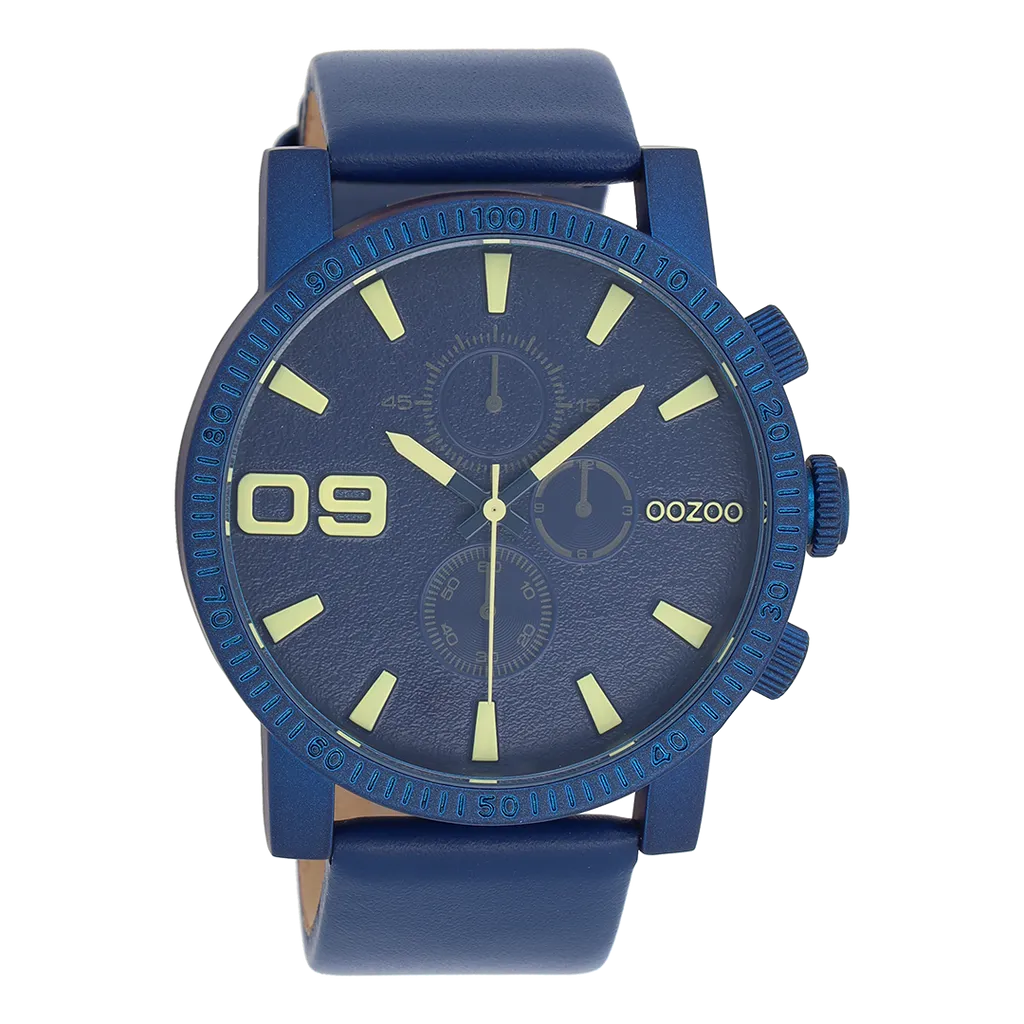 OOZOO Timepieces C11436 Unisex Uhr Leder-Armband – blau / lemon 48 mm
