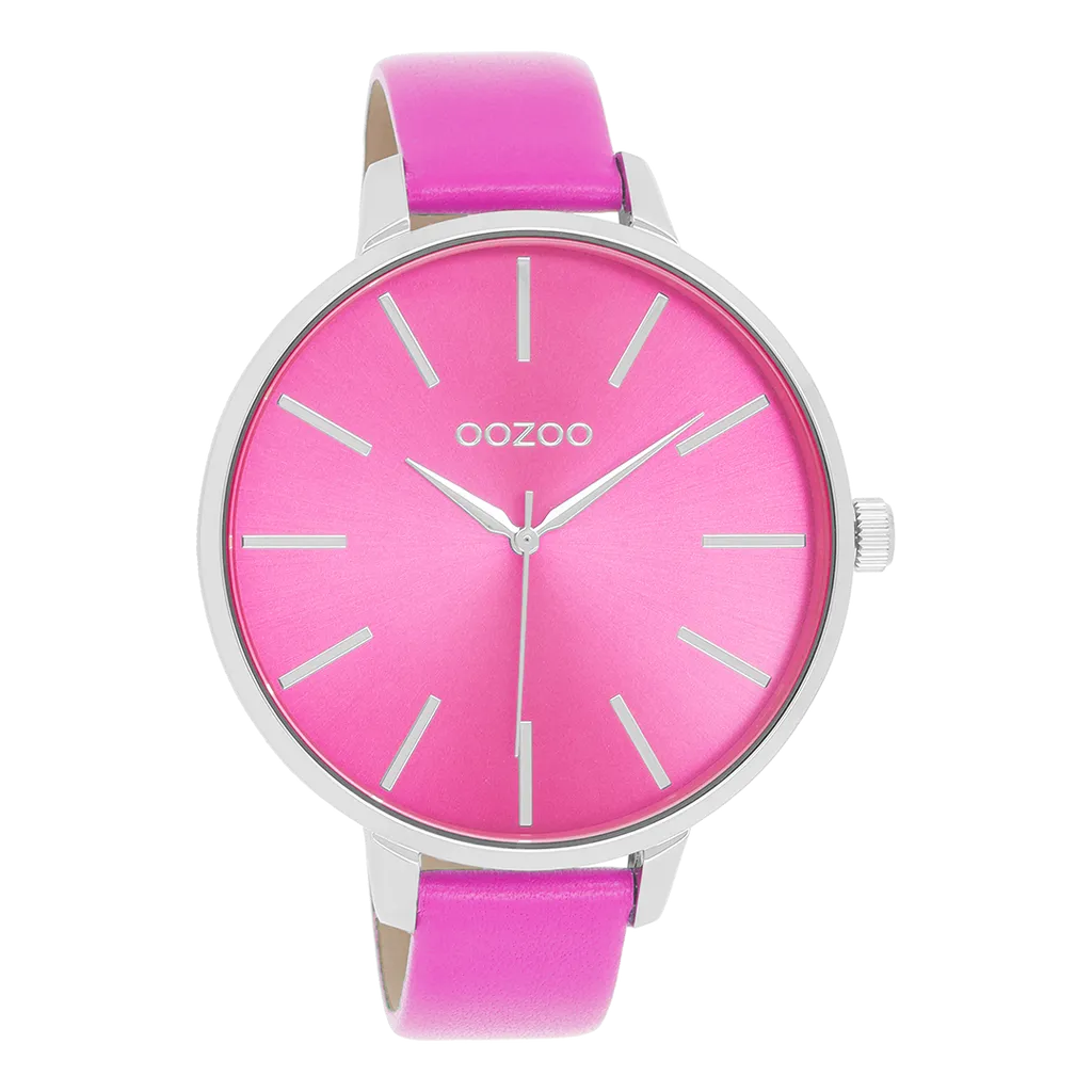 Trendy, stilvoll und immer einsatzbereit – die OOZOO C10984 ist mehr als nur eine Uhr. Mit ihrem pinken Lederarmband und dem großen 48mm silbernen Gehäuse setzt sie ein Statement und verleiht jedem Outfit das gewisse Etwas.
