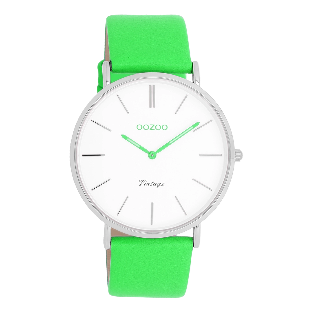 Heben Sie sich mit diesem wunderschönen, runden Unisex-Design aus der trendigen OOZOO Timepieces Kollektion hervor. Die C20311 hat ein neongrünes Lederarmband und ein 40 mm großes, silberfarbenes Metallgehäuse. Mit dem weißen Zifferblatt, den silberfarbenen Ziffern und den sandfarbenen Zeigern setzen Sie ein modisches Statement. Diese unverzichtbare Uhr für Ihre Garderobe verfügt über Mineralglas, eine Edelstahl-Rückplatte und ist nickelfrei. Die Uhr verfügt über ein 2 ATM japanisches Uhrwerk und hat 2 Jahre Garantie.