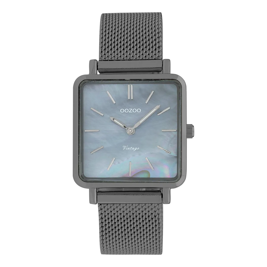 Raffinesse und Eleganz sind zwei Elemente unserer schönen OOZOO Vintage Classics. Dieses klassische quadratische Design mit einem modernen Touch ist für jeden etwas dabei. Diese Unisex-Uhr ist mit ihrem 28-mm-Gehäuse aus Titanmetall und dem dunkelgrauen Zifferblatt aus Perlmutt die perfekte Kombination aus Komfort und Mode. Das Titan-Metall-Mesh-Armband macht diese Uhr zu einem Allzeit-Klassiker, den Sie zu jedem Anlass tragen können. Das Zifferblatt hat Titanstreifen, Ziffern und passende Zeiger. Der C9849 ist ein Muss für Ihre tägliche Kleidung. Das Mineralglas liegt in einem 6,9 mm schlanken Uhrengehäuse aus Metall mit IP-Beschichtung. Diese Konstruktion hat eine Rückplatte aus Edelstahl und ist nickelsicher.