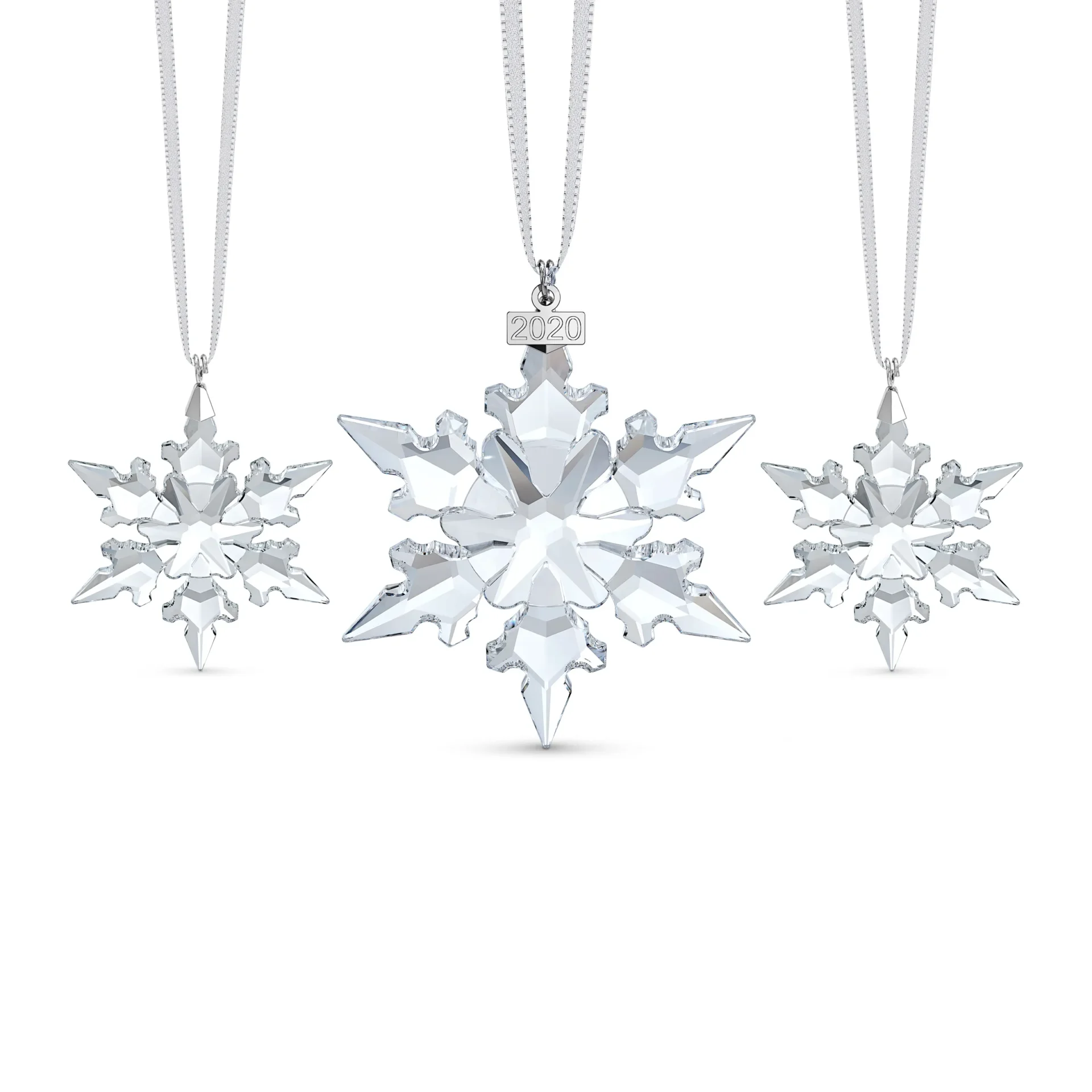 Dieses Set von Swarovski ist von dem klirrend-kühlen Zauber der Schneeflocken inspiriert. Dazu gehören das Ornament, Jahresausgabe 2020 und zwei Kleine Schneeflockenornamente. Diese Highlights in klarem Kristall mit jeweils 110 Facetten unterstreichen jedes festliche Display mit einem exquisiten Funkeln. Sie alle hängen an filigranen, weißen Satinbändern. Das Ornament, Jahresausgabe präsentiert ein Etikett mit dem geschmackvoll eingravierten Ausgabejahr „2020“. Es ist eine wirklich großartige Geschenkidee für viele feierliche Anlässe, darunter ein Geburtstag oder Jubiläum. Natürlich ist es auch ideal für alle Sammler. Dekorationsobjekt. Kein Spielzeug. Nicht geeignet für Kinder unter 15 Jahren.