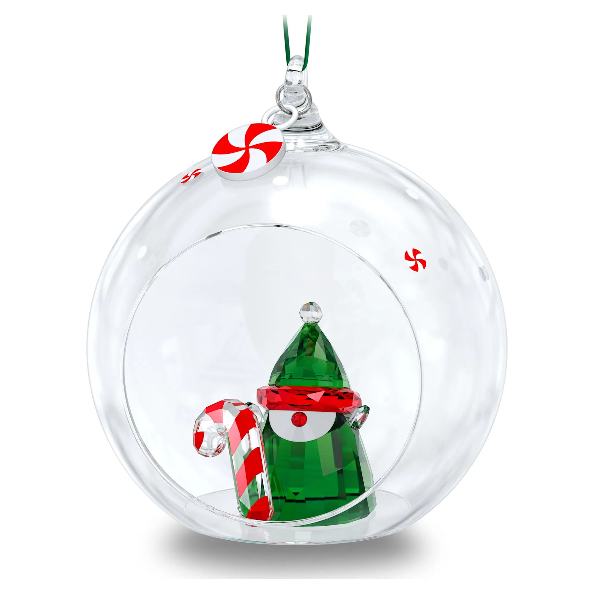 Genießen Sie die festliche Jahreszeit und wecken Sie Kindheitserinnerungen mit diesem charmanten Kugel-Ornament aus der Holiday Cheers Kollektion von Swarovski. Im Inneren der mundgeblasenen, offenen Glaskugel befindet sich eine Darstellung des Weihnachtsmannes mit einer Zuckerstange in der Hand, der aus klarem, rotem und grünem Vollschliff-Kristall gefertigt ist und mit 348 Facetten funkelt. Ein runder von Zuckerstangen inspirierter Aufhänger und ein grünes Satinband vollenden das Design. Es ist nie zu spät, die Tradition des Sammelns dieser zeitlosen, farbenfrohen Ornamente zu beginnen. Dekorationsgegenstand. Kein Spielzeug. Nicht geeignet für Kinder unter 15 Jahren.