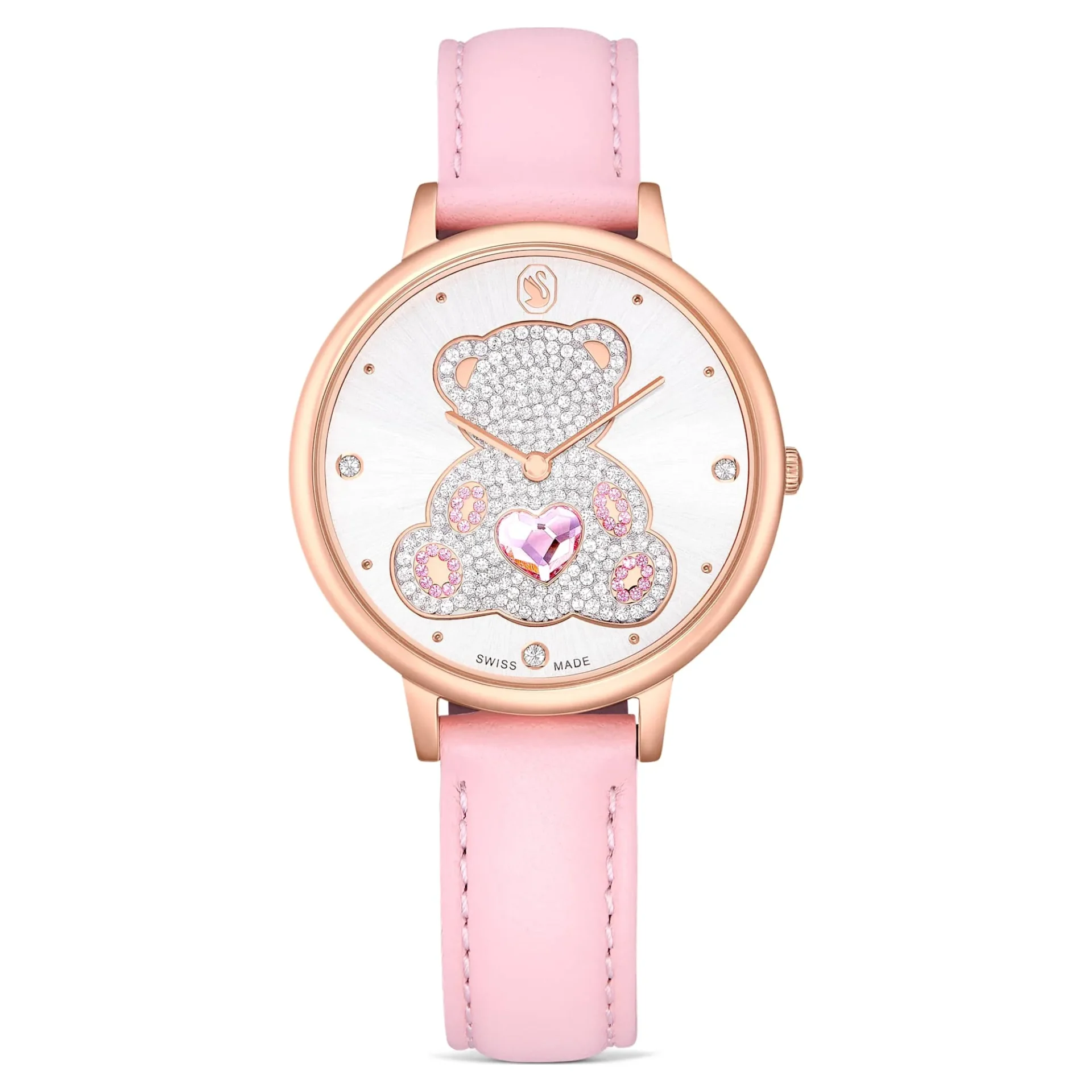 Swarovski Teddy Uhr Schweizer Produktion, Lederarmband, Rosa, Roségoldfarbenes Finish